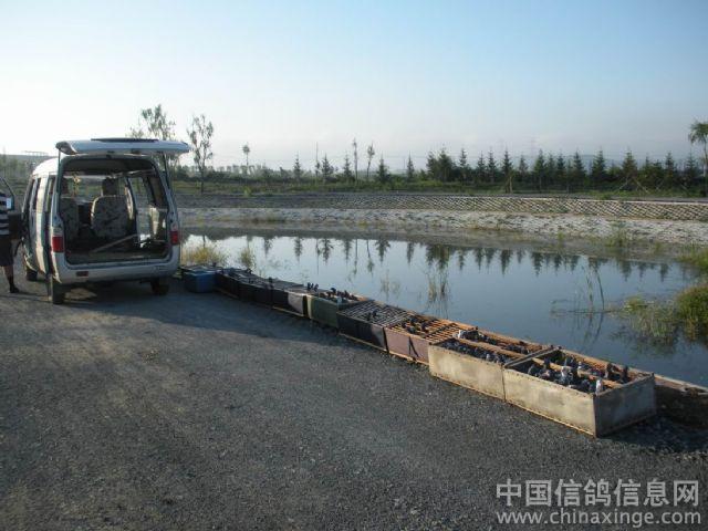 训放车到达释放地,休息10分钟,选择适合赛鸽起飞好地方,小河边