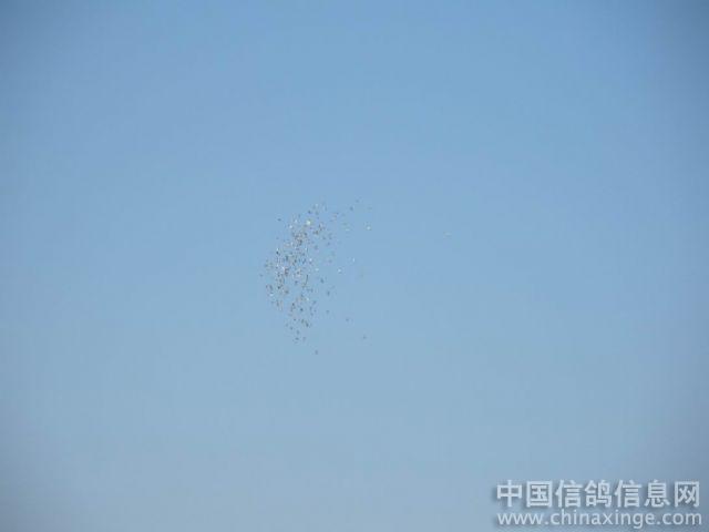 赛鸽冲上蓝天,盘旋几分钟,向家的方向飞去,除四羽赛鸽向反方向飞去,其它走势良好