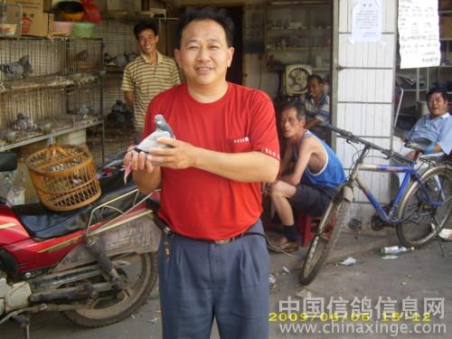 本次比赛的冠军鸽(持鸽人为冠军鸽主赵国瑞的弟弟)