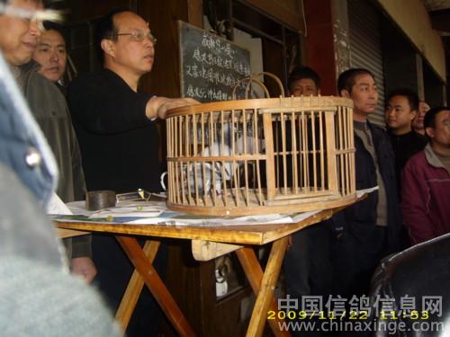 作品说明: 2009年11月22日上午10:00,衡阳市2009年秋季幼鸽特比500公里1-20名拍卖在市信鸽协会举行,200余名鸽友参加了拍卖会。拍卖会现场高潮迭起,气氛浓厚,20羽鸽子全部拍卖成功,冠军以7000元的高价成交,创造了我市信鸽拍卖史的最高价。同时,在拍卖会现场为我市身患重病的困难鸽友熊子敬进行了捐款,广大鸽友纷纷伸出友爱之手,慷慨解囊,充分体现了天下鸽友是一家的真谛!