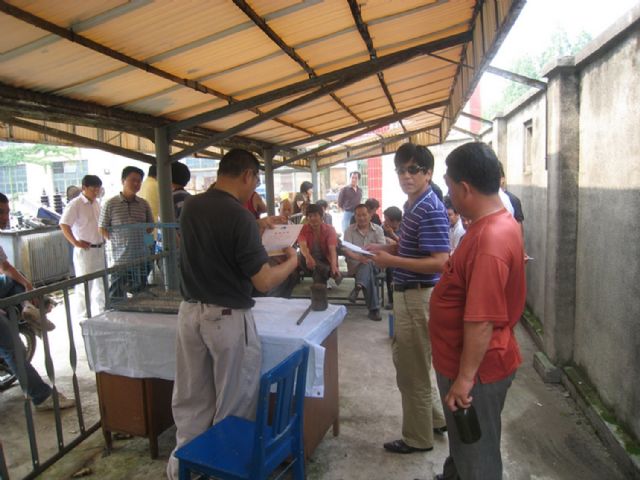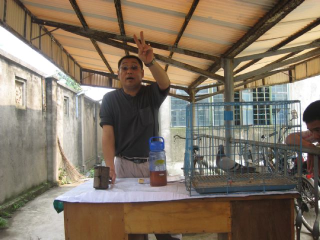 鸽友唐代华和前辈鸽友卢开海在讨论竞拍目标