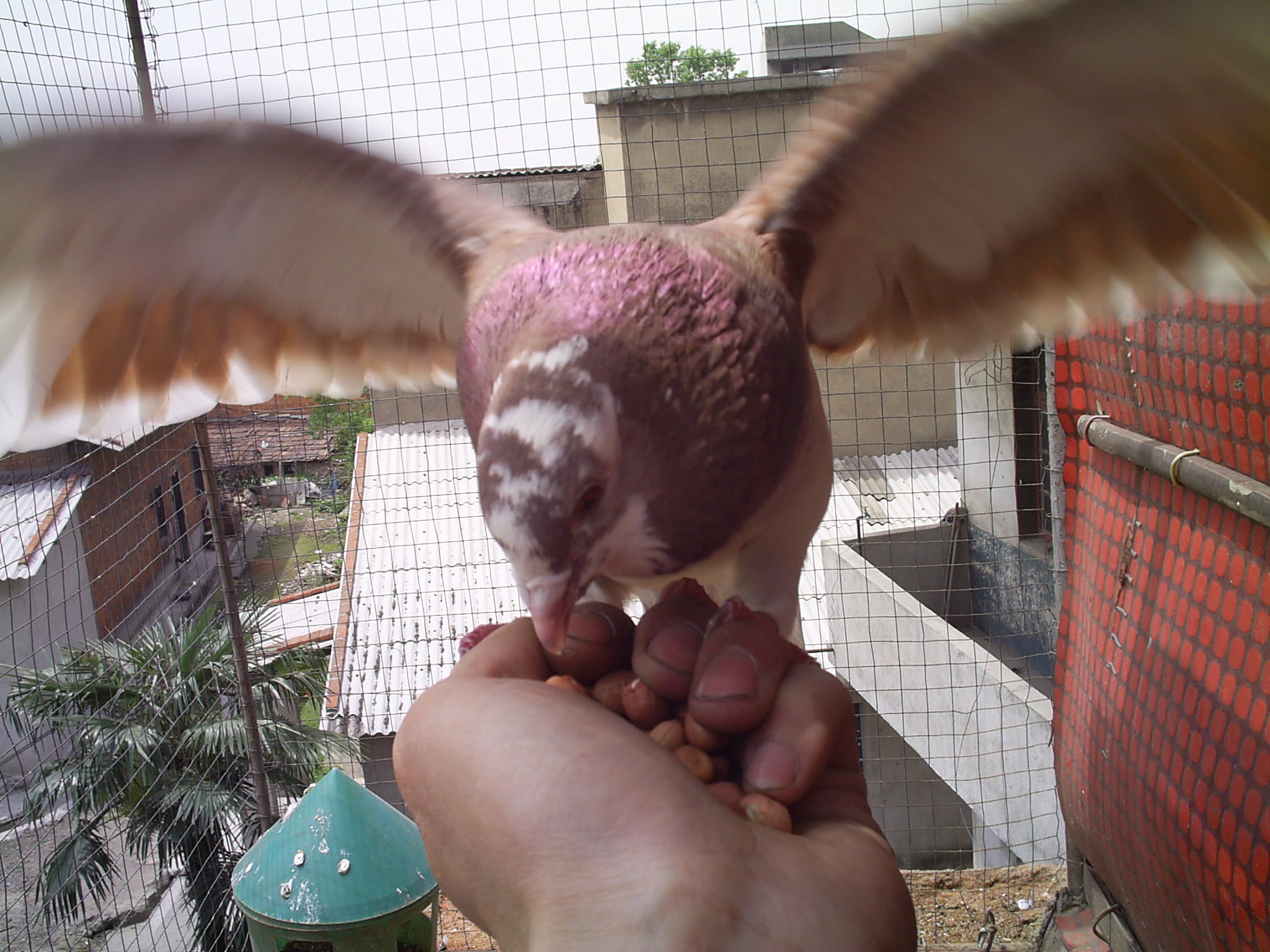 我最喜欢你那只大红鹰,很漂亮,我就喜欢那种花头白条的鸽子.