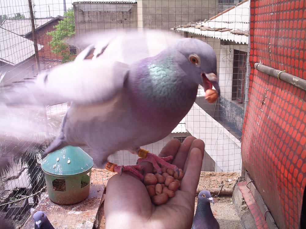 你的鸽子很好!有没有公里数了?有没有成绩呢?有没有兴趣去北京的公蓬里去参加比赛呢?