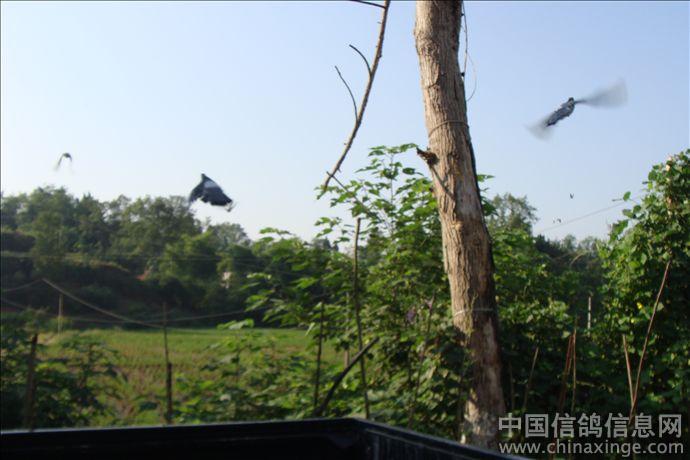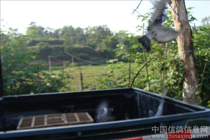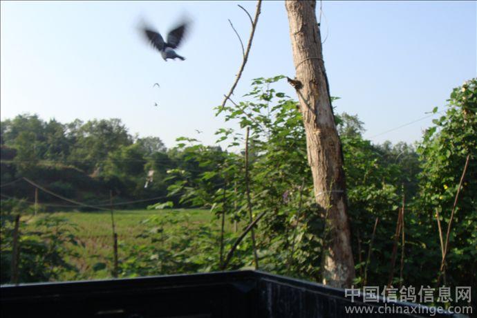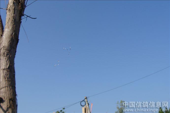 作品说明: 秋训安山5公里,天气晴,下乡到5公里的安山村训放15羽2010年的赛 鸽。
