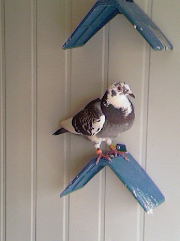 安吉拉可能是出色的好育种鸽.有象画眉鸟一样长有白眉毛的雌鸽.应得到重视. |
