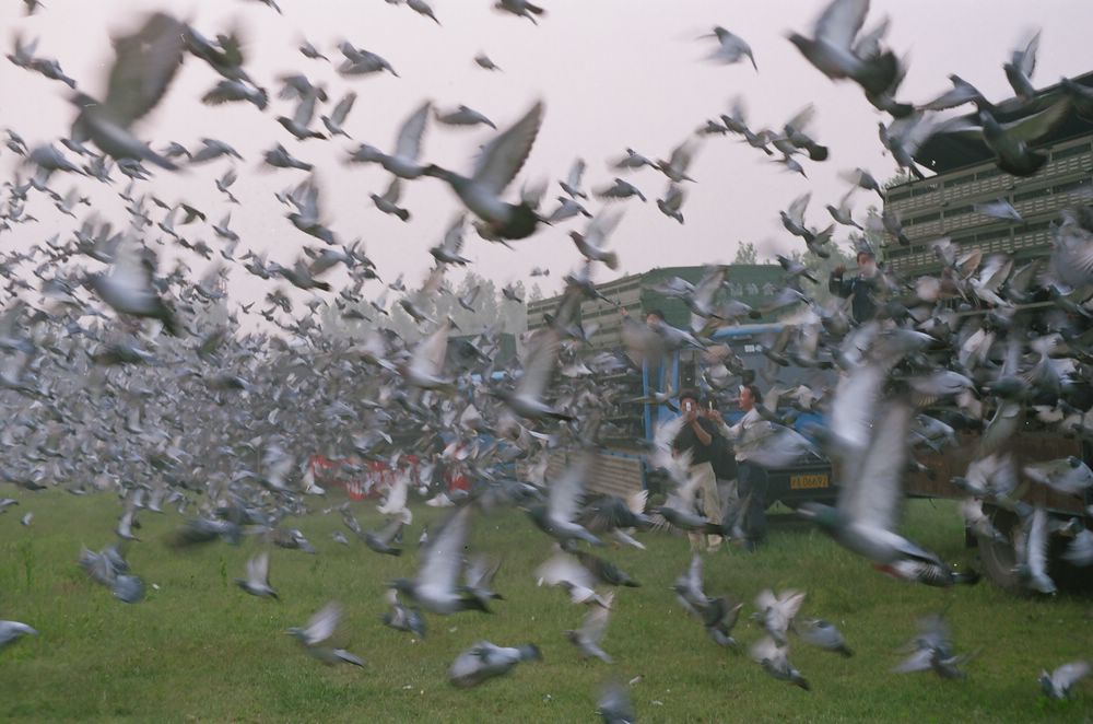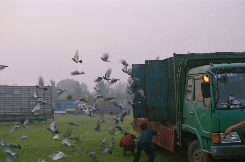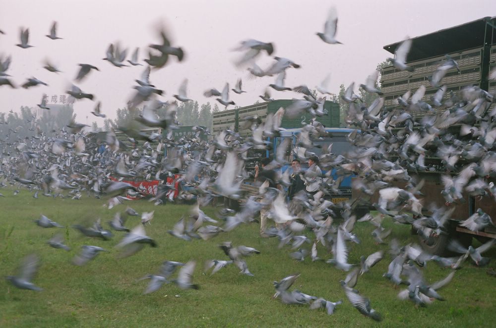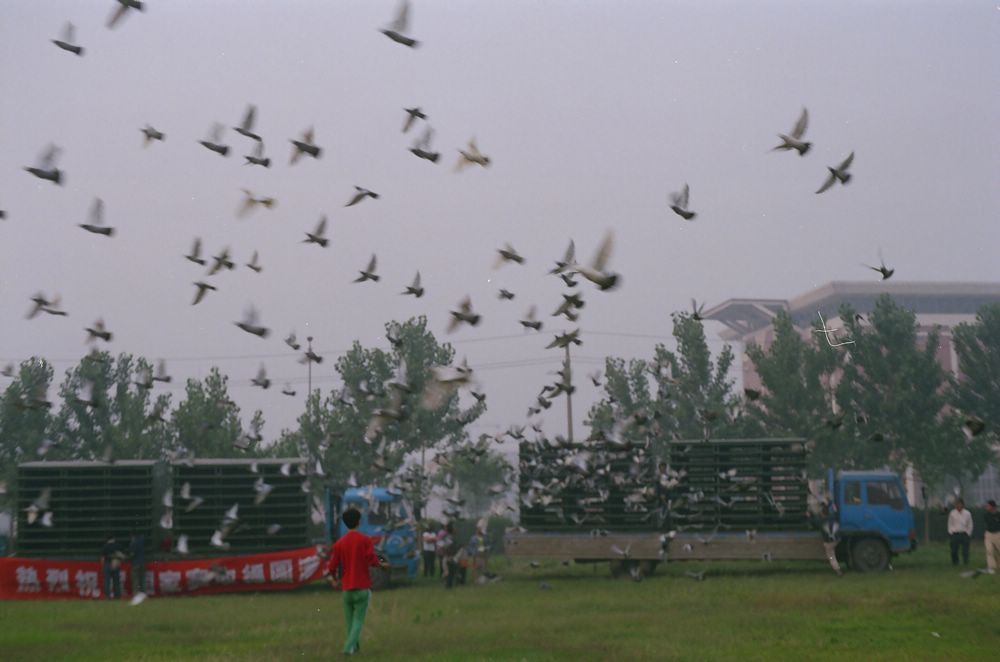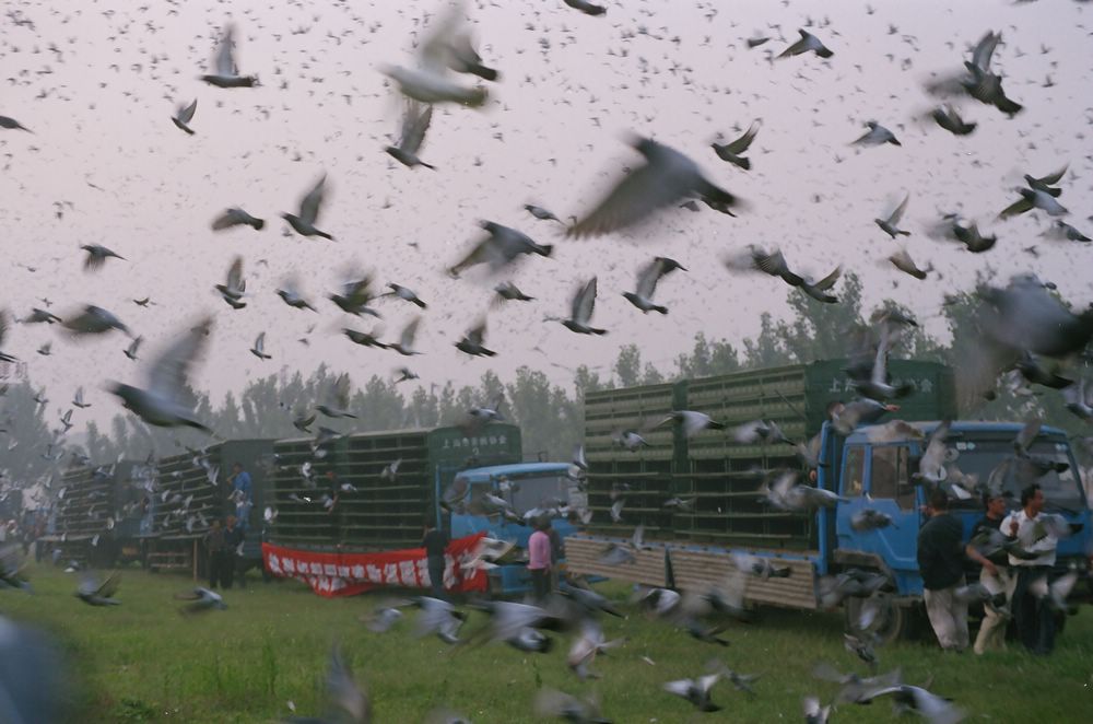 场面还是比较壮观的一定也有不少鸽子还没飞上天就撞上自己的同类了吧? |