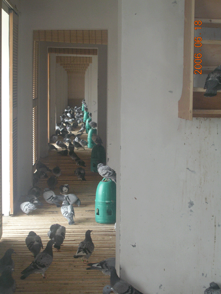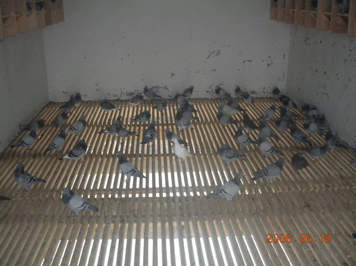 很好;请多照出鸽子家飞的样子,还有你公棚后面的高压线对鸽子家飞有影响,能否想办法在高压线下栓气球等东西,以免鸽子家飞撞上高压线,还有鸽子站在地上[木条子做的]是否太通风,因木条子离地1米多,而你公棚处在半山腰,风力从下往上吹,虽然通风,但风力太大,鸽子容易生病,不知我们的想法是否对头。并祝你公棚越办越好!