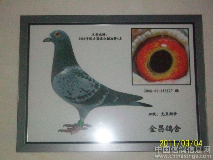 此鸽与266828黄金配对,以做出300—500公里奖鸽多羽!