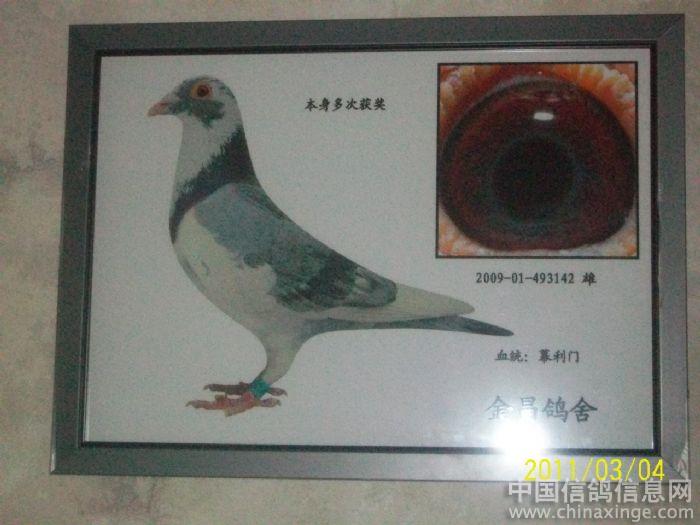此鸽与493142黄金配对,以做出300--500奖鸽多羽!
