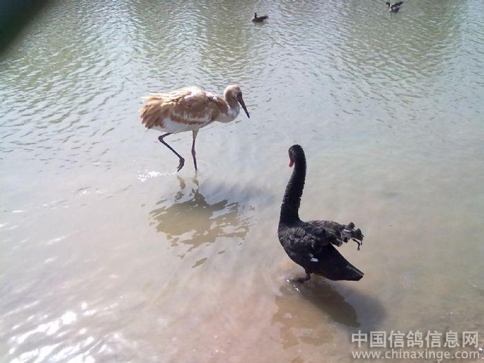 白的是斑头雁 高的是 丹顶鹤幼鸟 |