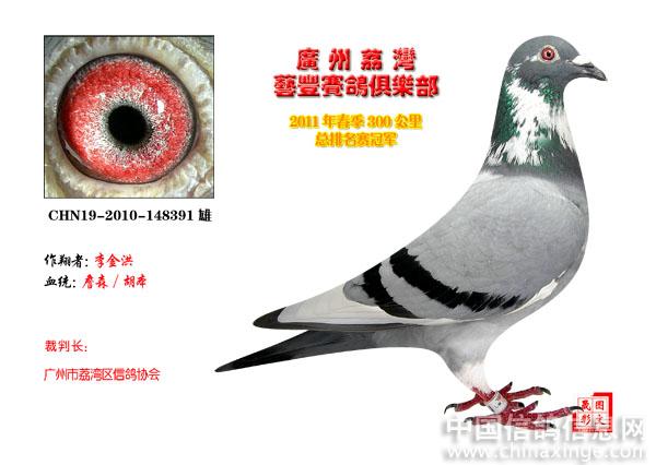 2011年春,广州艺丰赛鸽俱乐部300公里总排名冠军。女儿给他改名为"翠花”,虽有点女性化,但很能体现爱鸽的外观。