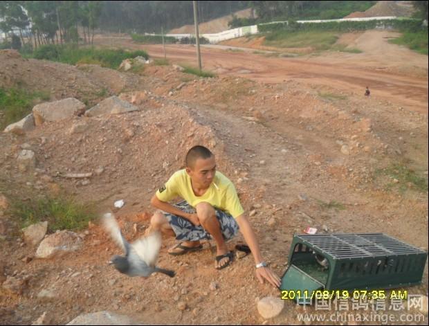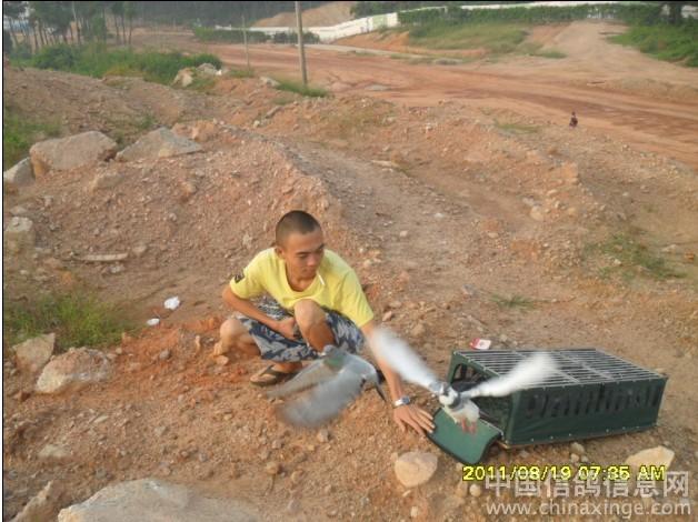 作品说明: 最近天气比前几天的温度要下降一点了,选手鸽的毛也差不多换好了,离鸽会训放还有20天时间!跟鸽友约好早上5点出发去里水-和顺训放30公里。让鸽子适宜训放---6;55分爱鸽放飞在天空盘旋了2圈就往归家的方向飞不见了,我们整理好了鸽笼就往家里赶了,7;;22分小妹来电话说鸽子到了,第一梯队13羽,感觉效果还不错,是不是有点快了,32公里27分钟就到了。第一次21公里南国桃园最快的都飞了38分钟,这次远了11公里还快了不少,回到家里的时候已经到了19羽了,由于自己要工作就没有等了,中午回来的时候。差的那一羽小家伙已经回来了,看看鸽子不对劲怎么多了一羽幼鸽,抓来一看,吓我一跳还是比利时的,幼鸽-灰-砂眼-2011-GB-1004506。。。如果主人看到,请联系我,带上资料无偿领回。电话13590666923-QQ378434970。第2次32公里训放成功。放20归了21。温馨小提示。早上骑摩托车训放的鸽友注意,早山气温凉爽,特别是山多的地方温度相差很大,我这次训放都感冒了。鸽友最好备多一件衣服。避免感冒。好身体才是人生最大的财富。谢谢支持战狼鸽舍!