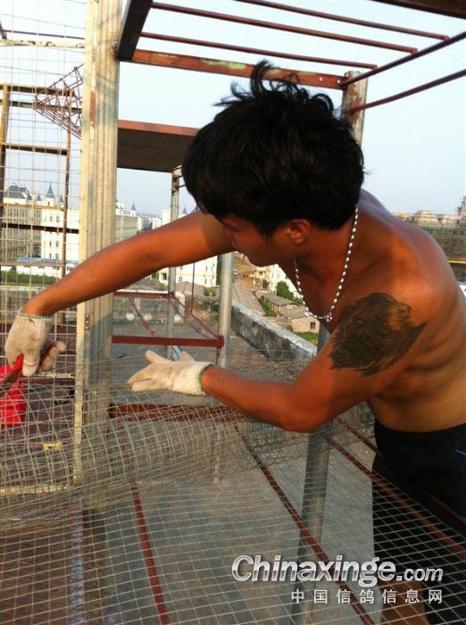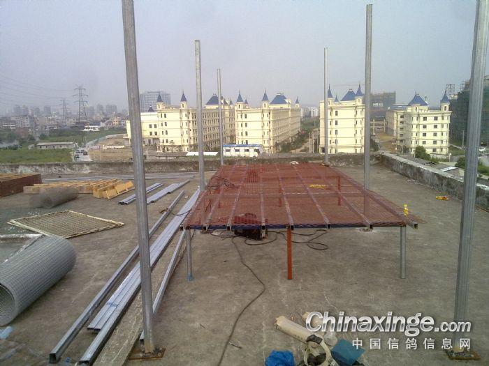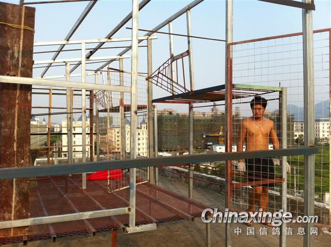作品说明: 鸽舍长6米宽2米高2.3-2.6 连地网50 改顶上真辛苦太阳把我晒的跟非洲人一样.两个电焊老师也辛苦了.大家看看 以后哪里不好慢慢改善.