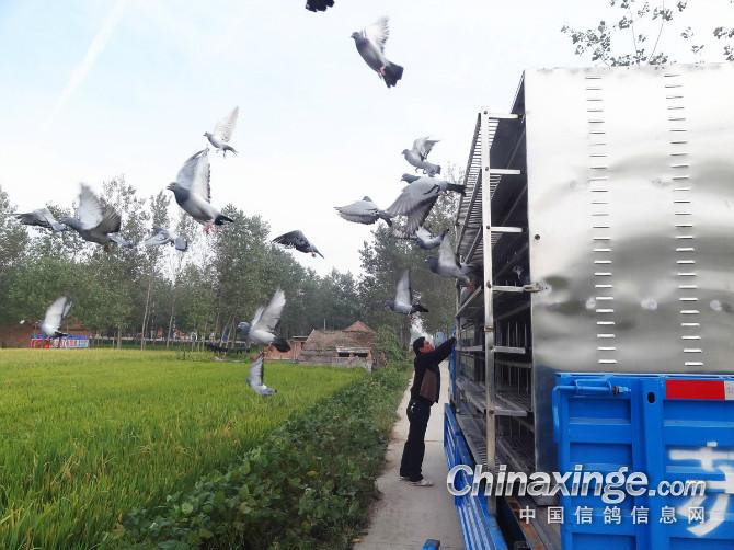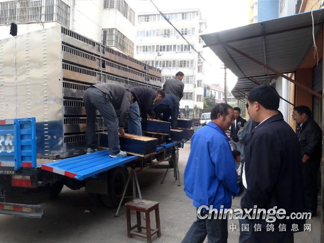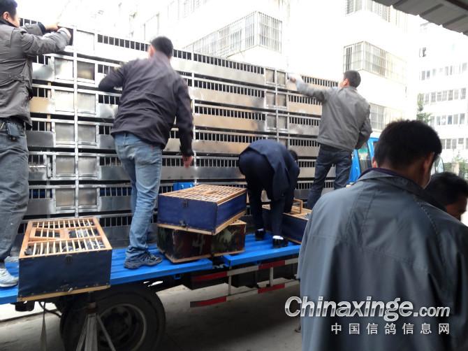 鸽友自己逮鸽子送往赛鸽车。