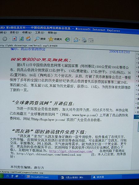 朋友们!中信网又为我们广大鸽友办了桩好事,安装了“鸽友通”,给我们日常上网确实带来了极大的便利!别迟疑了,赶快升级吧!!! |