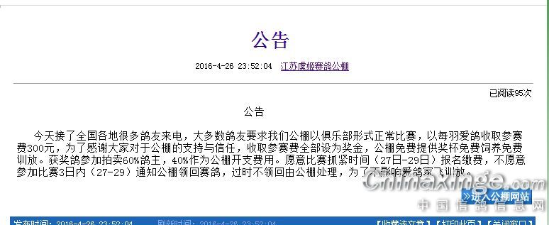 沛县是那个鸟地放,都是些菜鸽,还拿出来骝,这些奖怕也都是自己花钱做的假,看看这鸽子,怎么配当冠军。要不也就是些一、二百羽鸽子参加的比赛。 |
