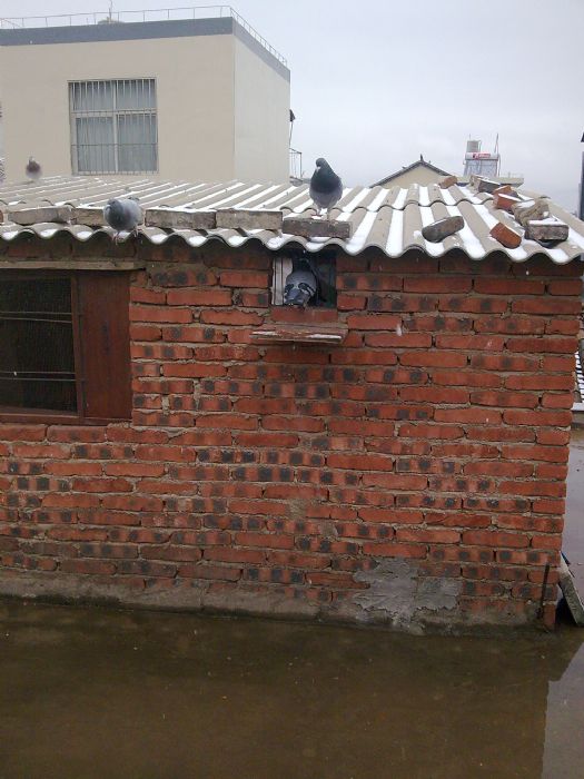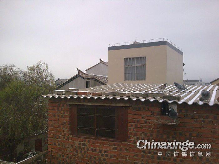 作品说明: 2011年第一场雪后云南会泽小顺鸽舍信鸽家飞