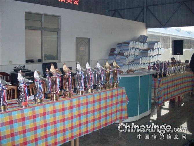 颁发奖杯,获奖鸽主
