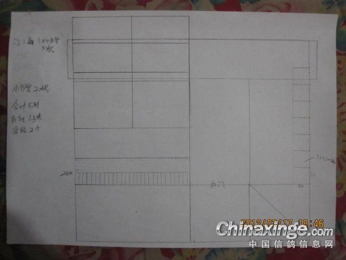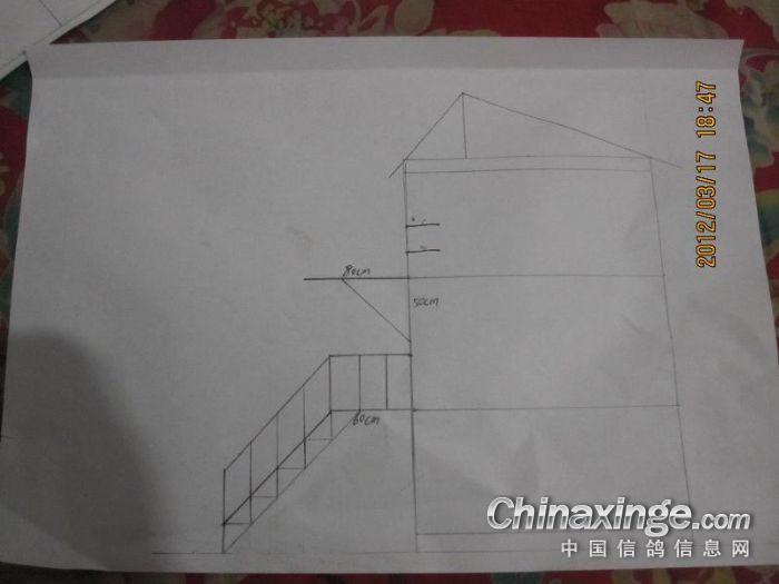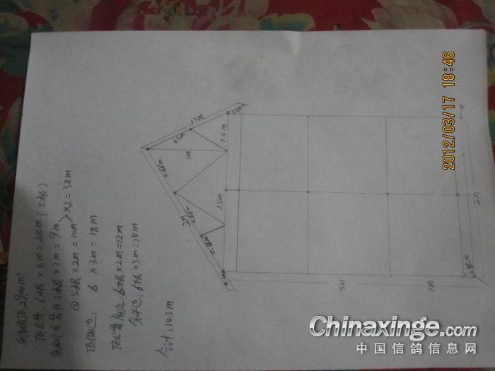 晒棚顶上的孔是进口吗?是的话我介意你改一下,这样给鸽子感觉高,不安全,小鸽子开家容易丢,这是经验之谈。 |