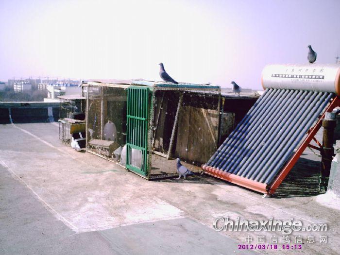 上楼顶不方便,没有楼梯,是个天窗。 平时工作家务忙,只能星期六星期天玩鸽子,喂鸽子,打扫鸽舍。 那两个大壶是用10L的水壶改成的食壶(把漏水孔改大成漏食口) 小的3L的是水壶。 时间条件如此。 莫北寒羽 |