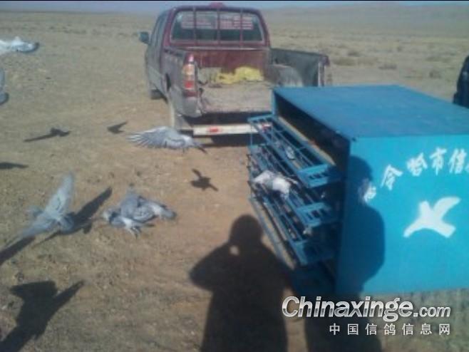 手机拍的不清晰,隐约能看到飞出的鸽群