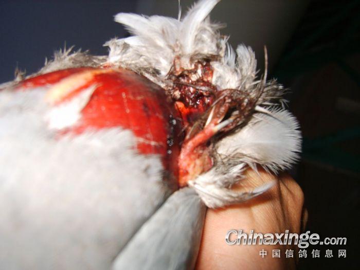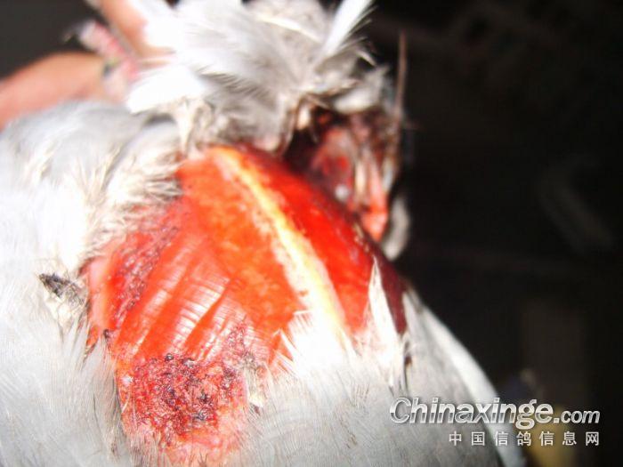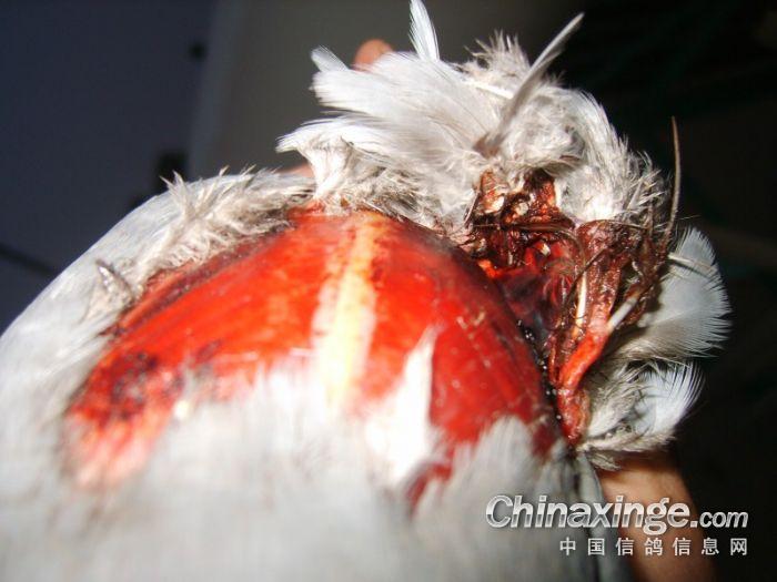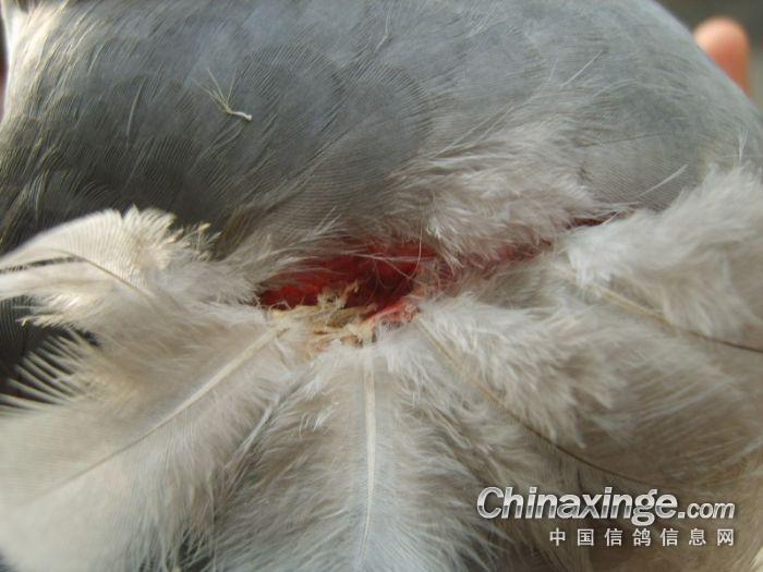 今天一共出事三只!两只回来了都带伤!一只还没回来!奇怪的是两只都没有一只有抓到肉里的痕迹!全是皮破了!都很长!翅膀一点伤也没有!如果鹰攻击!都从上攻击的!但回来的两只全是腹部破皮!难道真的有黑手盯着我家的鸽子了!