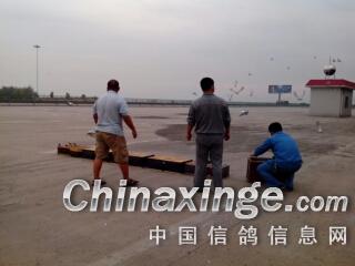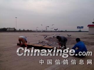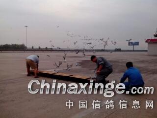 微笑哥们开笼放鸽,靠老海哥,你会开笼吗?挡住鸽子出笼了。