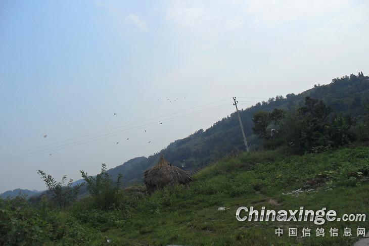 作品说明: 裴兴高石山——秋训鸽   裴兴镇位于垫江县东南部,距县城65千米。东接丰都县许明镇,北连大石乡石良村、杠家镇支汇村,西邻永平镇罐石村,坪山镇旭东村,南界三溪镇江岭村、青龙村。面积59平方千米,人口20017人(2005年)。辖拱桥、长安、高石、上水、双柏、华龙、南华、新宝、桂花9个行政村,48个村民小组。 地处黄草山麓,属中丘连低山地形,海拔为356—1035米,平均海拔420米。三(溪)裴(兴)龙(岗)公路南与涪(陵)垫(江)公路相接。景点有华尔山溶洞、凉山墩森林公园等。 秋季天气转凉,重庆鸽友一片繁忙。鸽会放个人放,好热闹。本人由于下乡,没有赶上鸽会训放,但是利用下乡机会,带上20羽,毛换得七零八落的赛鸽,私下训放一下,过把放鸽瘾。便车训鸽,不算特权,职工理解,不必大惊小怪。重庆鸽友放鸽困难,不少大山,就是电线,今天还好,选个“高山”。 “高石山”海拔高度800米,好地方。 今天训放裴兴凉山高石,鸽棚东方。40空距。