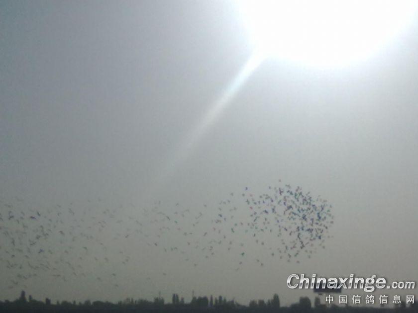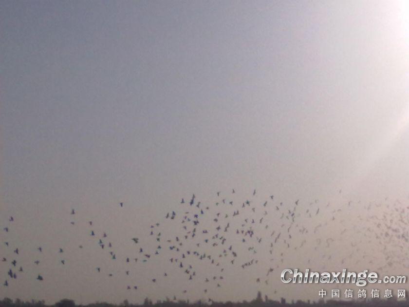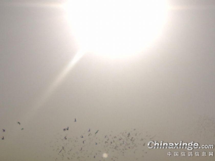 走远了空中只剩下一轮赤眼的太阳,因我一个人带着鸽友的几十羽赛鸽单放,所以单放镜头拍的很少,请鸽友谅解,谢谢您的欣赏。