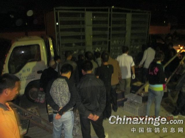 鸽友们集鸽很挤。还排队。比第1天集鸽人还