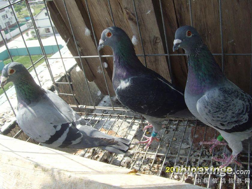 04年鸽国家赛69名,08年双白条雄,05年众援公棚155名雨点母。从照片上看,感觉这三只鸽子还不错。
