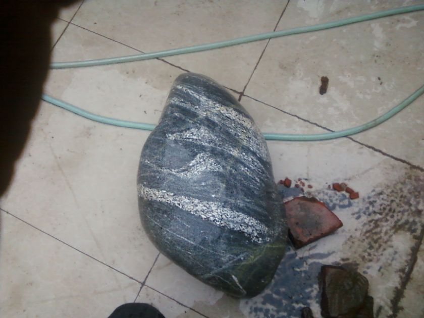 这是我收藏的石头,它是长园形的,純天然,内有图形,直径0.47米,长0.78米,有看出是什么图形的给我说说,谢谢