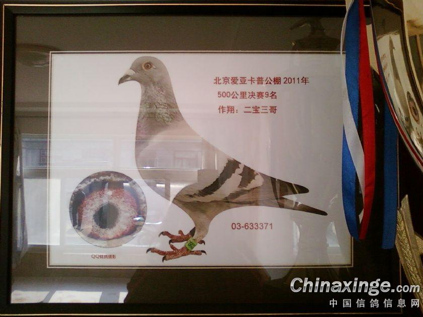 兴旺鸽业,鸽主--张军,03-633371在2011年北京爱亚卡普公棚500决赛中获得第九名。