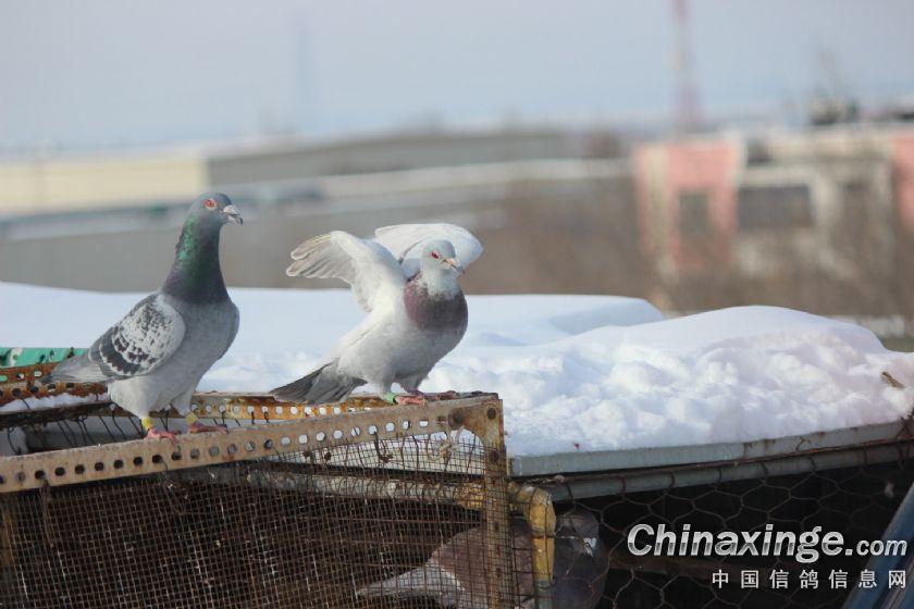 零下15度的鸽舍,不仅能生存,而且能作育幼鸽。 本舍冬季不喂水,鸽子采食冰雪解渴育鸽。