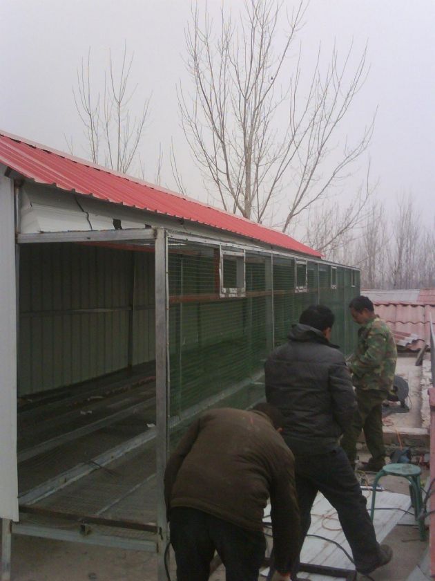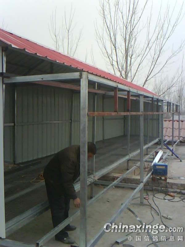建议每间的中间拿木板隔起来,鸽子休息比较安静还能挡风,入口前的那网再挡一半或者全铺上木板,鸽子下来会舒服点,赛鸽棚还是暗点好,恢复起来会相对快很多。