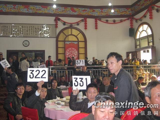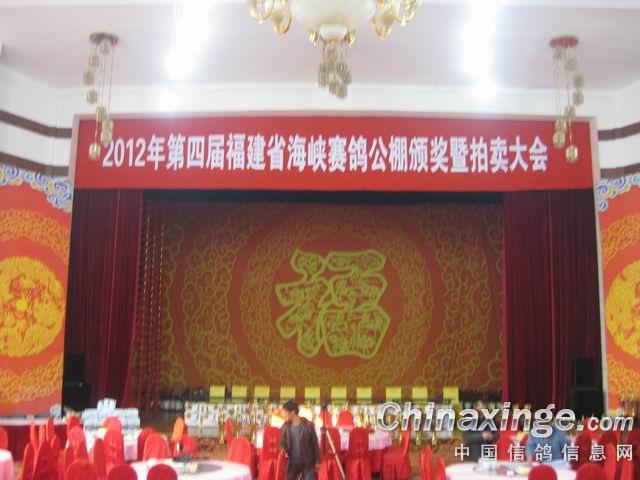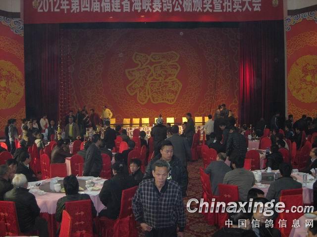 作品说明: 2012年12月9日第四届福建海峡公棚拍卖大会 在福州白龙宾馆多功能报告厅举行隆重颁奖拍卖大会。本次拍卖会聘请全国金牌拍卖师上海王志军主拍,都是来至全国的名家名血的优秀赛鸽。拍卖会于上午9点30分准时开始,参加拍卖的赛鸽来自福建、上海、浙江、广东、江西、山东、香港、台湾、美国……。 在福建海峡公棚欢聚一堂,这次拍卖会里,受关注的热度不断上升,让尊敬的鸽友们看到了海峡公棚的希望。海峡公棚为全国鸽友提供一个“公平、公正、公开”的赛鸽平台,使赛鸽运动朝着一个健康、有序的方向发展。本次拍卖福建海峡公棚500公里全部获奖鸽299羽,600公里挑战赛获奖鸽199羽。拍卖价格从1000元到22万不等,全场的最高价是本次比赛的鸽王冠军22万以及第八名6万、第十六名9.5万成交,拍卖会于下午5点30分顺利圆满结束。武平县信鸽协会祝福建海峡公棚越办越好、越办越强!