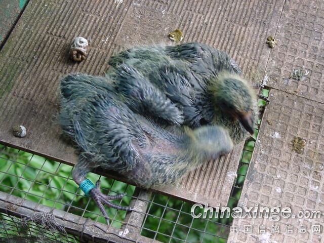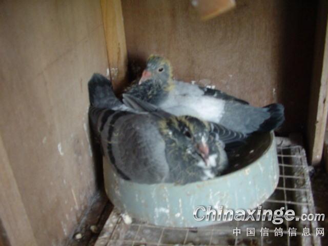 所出幼鸽20天大,可惜被打破了一个蛋,带春百日赛特比。