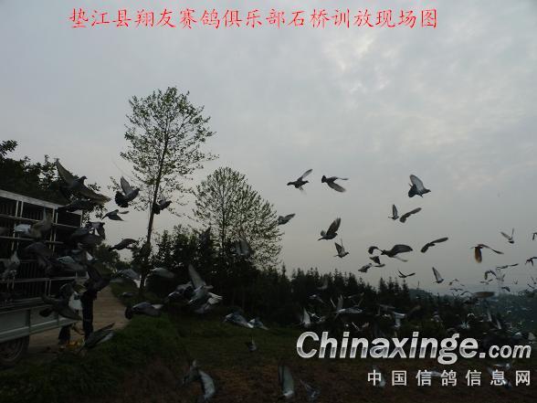 2013年3月31日,星期日,天气晴好。重庆垫江县翔友赛鸽俱乐部,选择了这样一个好天气,早上6时30分到7时30分集鸽了。规程上这次集鸽训放地点是四川省大竹县石桥镇,但是根据经验训放,一般选择在梁平县袁驿附近训放,(据石桥3公里处)。