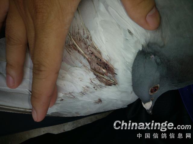 肯定不是鹰抓的,鹰抓的肯定毛也会掉些,估计是飞行时不慎翅膀拍打到坚固的物体导致受伤,特别是翻越高山时,树木多,而且第3天回来,肯定落哪发生意外....