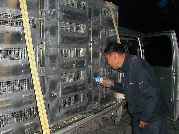 赛鸽车2013年5月11日下午2时10分从重庆市垫江县徐徐出发,经过司放员11日傍晚在陕西省留坝县耐心喂食、喂水,参赛鸽经过足够的休息。于12日平安到达陕西省凤县,12日早上6时30分,陕西省凤县秦岭晴空万里,山花烂漫,空气新绚、纯净。自然大氧吧给赛鸽归巢提供了一个良好的条件。重庆市垫江翔友俱乐部,重庆市铁路局垫江站信鸽协会的400公里“经典赛”决赛,在此开笼了……。司放员返回路途见证,沿途都是晴天,给赛鸽归巢提供了有利生命线……,但是热浪滚滚严重制约了赛鸽归巢。从12日下午1时22分第一羽优秀赛鸽胜利归巢。到晚上9时统计:一共报到39羽优秀赛鸽,归巢率为7%。此次决赛尚属今年400公里秦岭决赛归巢率最为理想,成绩最好的一次。此次“经典赛”不精点,多数鸽友目标选择有误,有一个假象,“高手”没有点的鸽,反而成为了高手的“佼佼者”,给鸽主带来了荣誉和小小财富。这次赛事是全国“禽流感”解禁下举行的,终于以胜利告捷落幕。下面欣赏司放现场瞬间和报到现场及成绩统计表。
