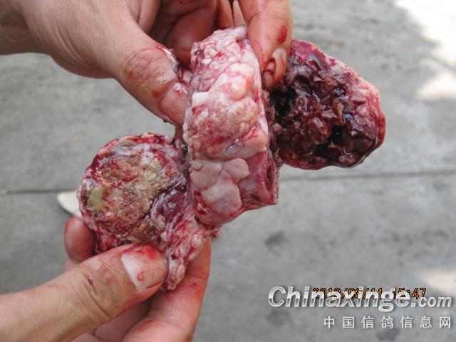 这是一只很好的鸽子,老品系的胡本,随着老胡本的去世,现在很少有这样的鸽子了,可惜。。不过这是肿瘤,没办法。 |