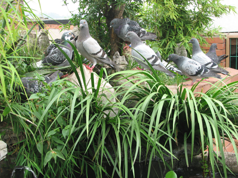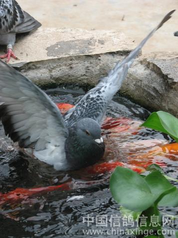 鸽子切莫喝养鱼池里的水,也不要在鱼池里洗澡,容易生病 |
