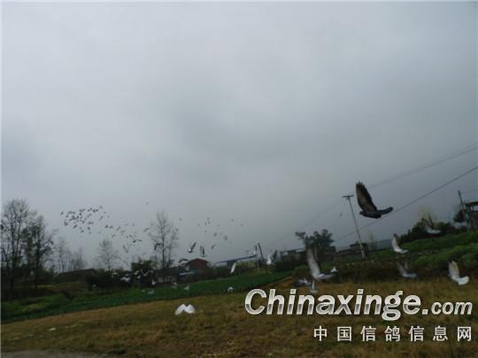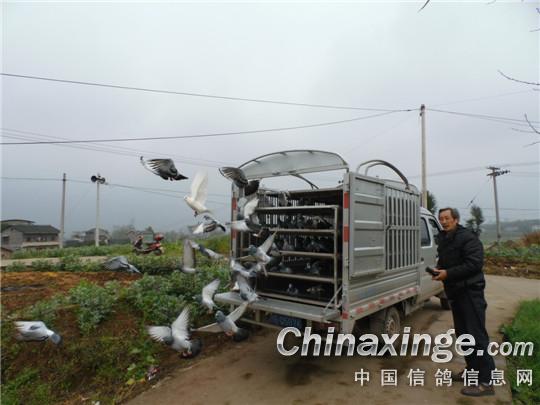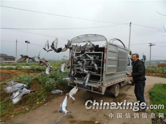 由于天气是雨后天晴,空气中水汽含量重,能见度低。赛鸽车10时50分就到达了新民镇,司放员陶绍华一边联系鸽会和俱乐部领导,告诉这边的天气,选择地势较高处,空旷一点的地方作为司放地点。让参赛鸽有充足的休息时间。选择适时天气开笼,到11时30分,天空刚露出太阳,马上开笼放飞。参赛鸽腾空而出,200多羽赛鸽争先恐后向着丰都方向飞去,“鬼城”赛鸽硬是了不得,垫江县城都不留下歇一歇。司放员认真检查放飞笼,做到一个不剩,一匹毛都不留在放鸽笼中……。