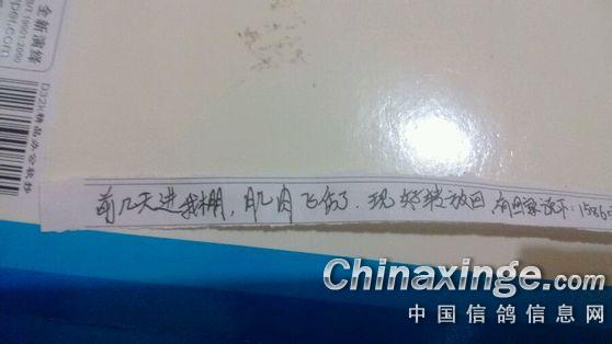 早上放出一个几天前进棚的,安徽的,鸽子身上留了我的电话,可是有时天落好像不能回去,去年放了将近二十只,都留有电话,没有一个打电话来的。。。。。。