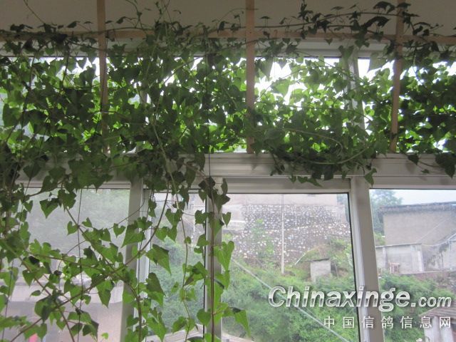 发酵后的鸽粪种植的何首乌已经把客厅飘窗外强烈的光线遮挡了。