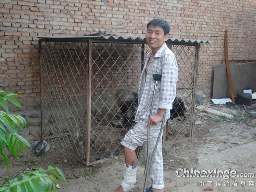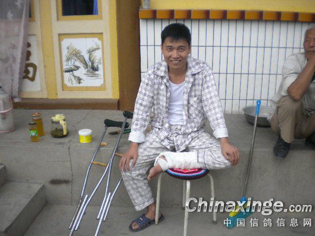 作品说明: 贾伟平鸽友在一次出车发生意外造成自己小腿骨折,他的受伤同时鸽子每天正常饲养管理拉下脚步吗.多亏周围鸽友的大力帮忙才能完成交棚幼鸽和一部分鸽会赛鸽.在此祝愿伟平早日康复.一路顺风.秋赛爱鸽摘金夺银!谢谢大家QQ\萧涯306796336