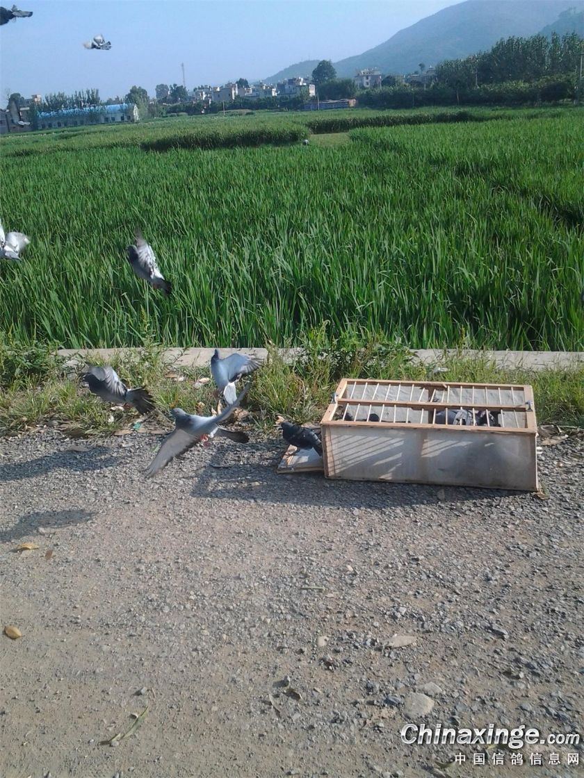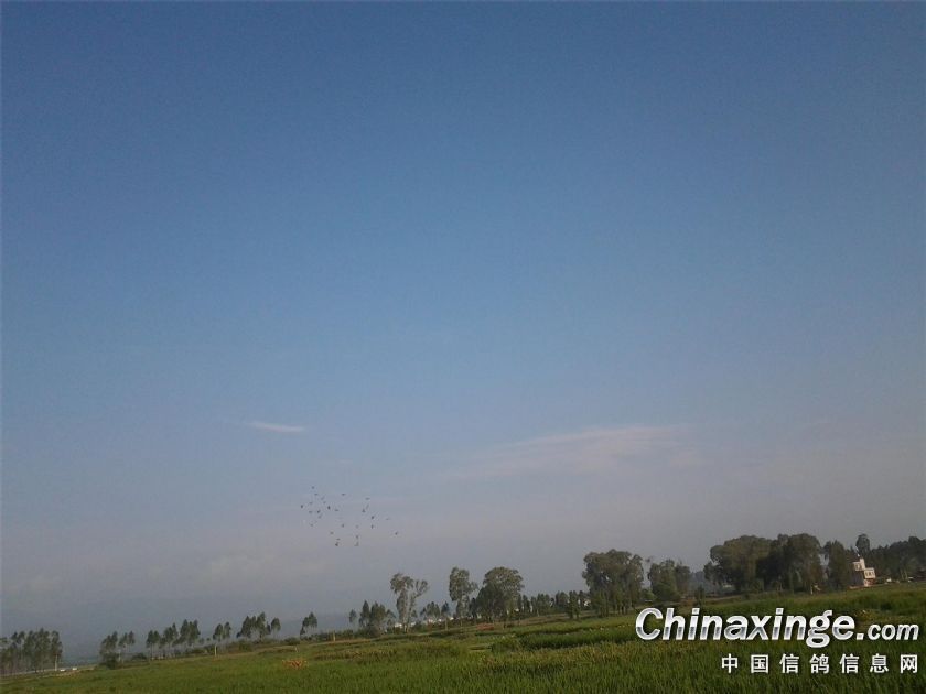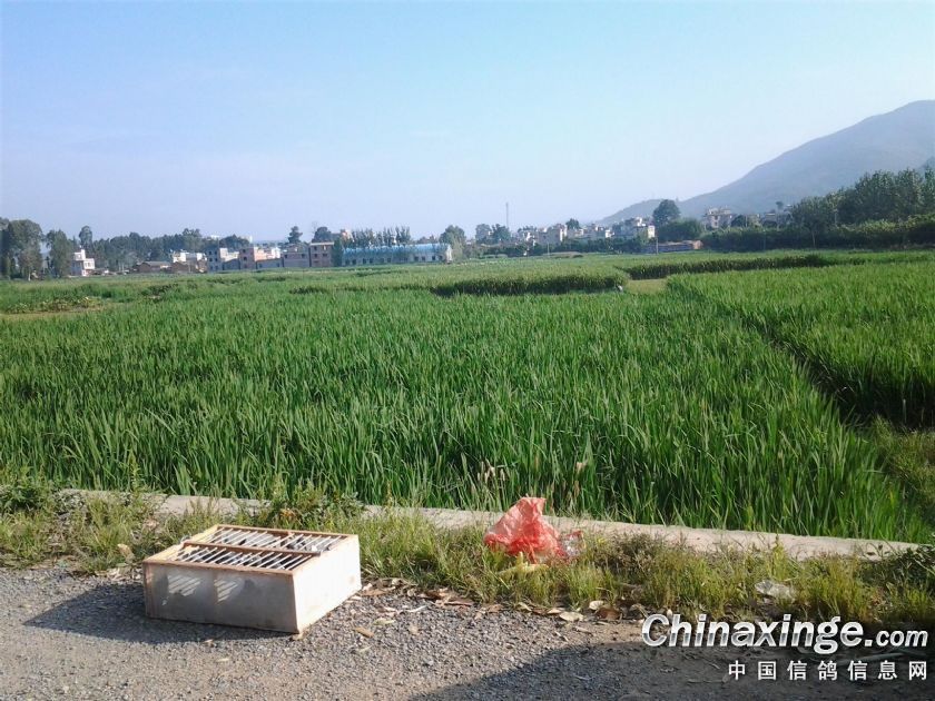 放飞地点选得不错,但是放飞时,笼子出口应该放在田边上,因为笼子和田地有落差,鸽子一出笼就上天了。不会像你这样,出笼后还在地上走两步。 |