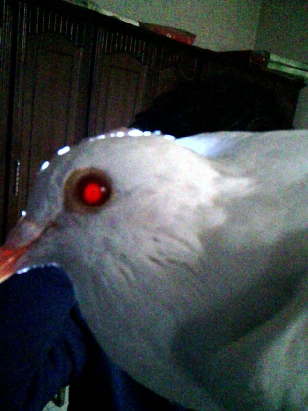 这叫兔子眼!回血鸽子会出现这样的眼睛我这也有一只!很少见! |