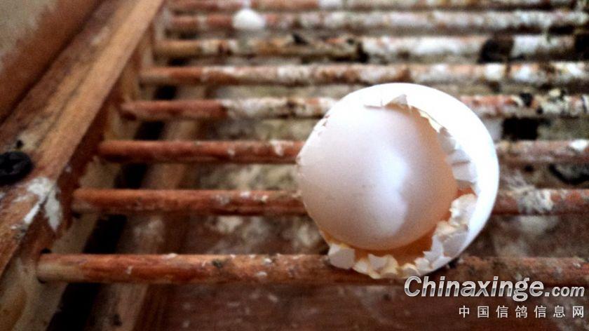 健康的幼鸽出壳裂纹整齐,蛋壳内部干净!