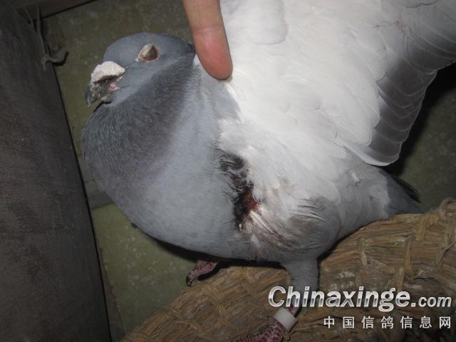 这雄鸽很漂亮,如果不是枪伤,伤不重养养好,以后会有出息的,头型看着就漂亮